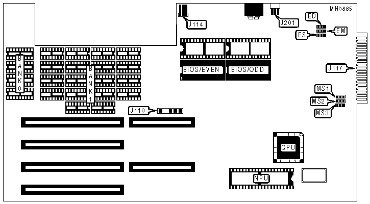 Note:The settings G and V are silk-screened on the board. The actual pin connections are unknown. 1MB and 1.5MB configurations require the system memory card to be installed. | |||