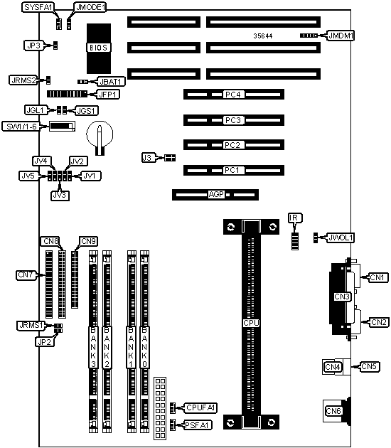 AGP slot | AGP | Power LED & keylock | JFP1/pins 1 - 5 |
