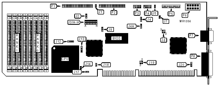 | » | Parallel port (P8) select LPT1 at 378h | pins 2 & 3 closed | pins 2 & 3 closed |