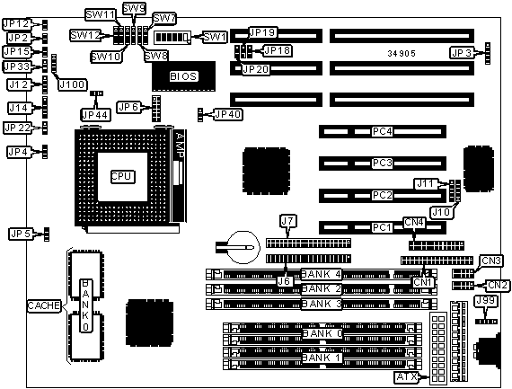 CMOS memory clear | JP40 | Pins 2 & 3 closed | |