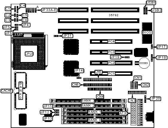 | CMOS memory clear | JP19 | Pins 2 & 3 closed |