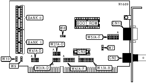 AUI transceiver via DB-15 port | CN1 | Boot ROM PAL chip | CN3 |