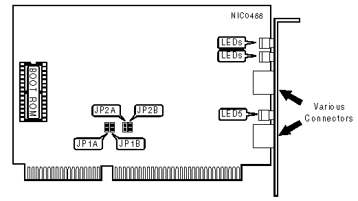 Note:On NICs that have twisted pair connectors LED 4 designates the state of the connection, while