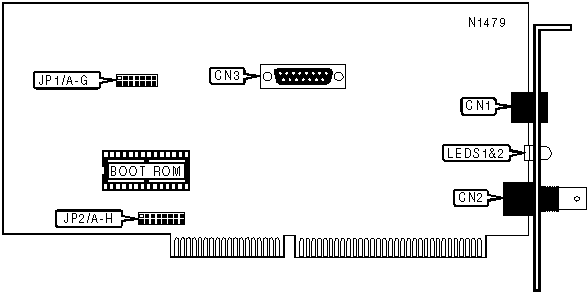 Unshielded twisted pair port | CN1 | AUI transceiver via DB-15 port | CN3 |