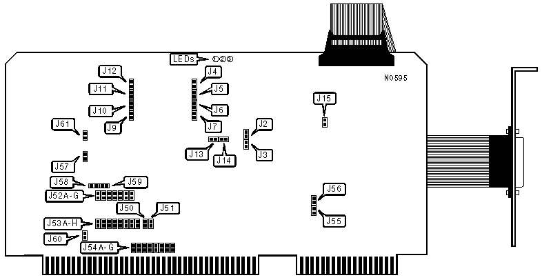 The iSBX connector (IEEE P969 specification), is included for daughterboard options. There are two jumper-selectable interrupt lines (J13 and J14) which should be left open unless an optional daugherboard is installed. If a daughterboard is installed, one jumper or the other must be closed, but not both. JP13 closed selects IR0, JP14 selects IR1. |
