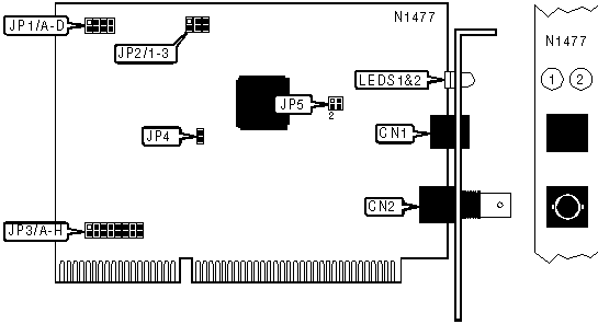 Unshielded twisted pair port | CN1 | RG-58A/U 50ohm coaxial port | CN2 |