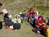 That was a very hard day, 20 km trek, 1000m ascent and 450m descent. I was crawling like a snail stopping every several meters to rest. On the way up to the Shug-La pass at 5250m, the group of young Tibetans that I met the day before walked all the way with me. Every few minutes they would offer to take my backpack or at least offload half of it, which I was politely refusing. Then they stopped for lunch and offered me to share it with them. They "helped" me finish 1kg of peanuts I brought. Their only food all the way was tsampa (a roasted barley flour), made into balls after adding some water and yak butter. Not a very exciting meal. And remember that they have it every day, three times a day. On the way, every time they stopped for a break, their main activity was searching for lice in each other heads, just like you saw monkeys do in the zoo. Until the last moment I wasn't sure if they were doing the trek or just walking to some village. They were actually doing the trek, as I've learned later.